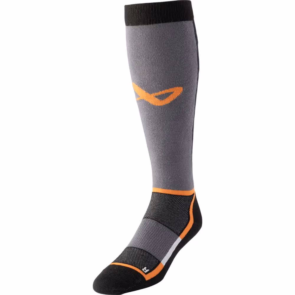Компрессионная посадка для производительности обеспечивает плотное, зафиксированное ощущение, удерживающее носок надёжно на месте в каждой смене, шаге и повороте на льду. Высокий дизайн обеспечивает полное покрытие голени, гарантируя, что носок остаётся надёжно позиционированным и обеспечивает стабильное тепло и поддержку от верха до низа.